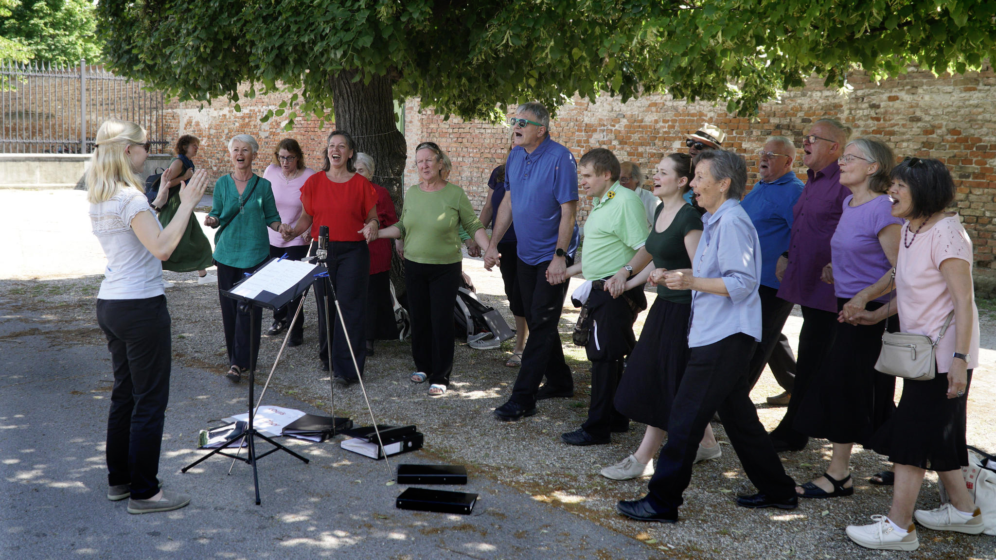 Wir waren an drei Standorten – alle im wohltuenden Schatten von Bäumen – mit jeweils sieben Liedern dabei. Es war unser erstes Event unter der Leitung von Magdalena Hartl.